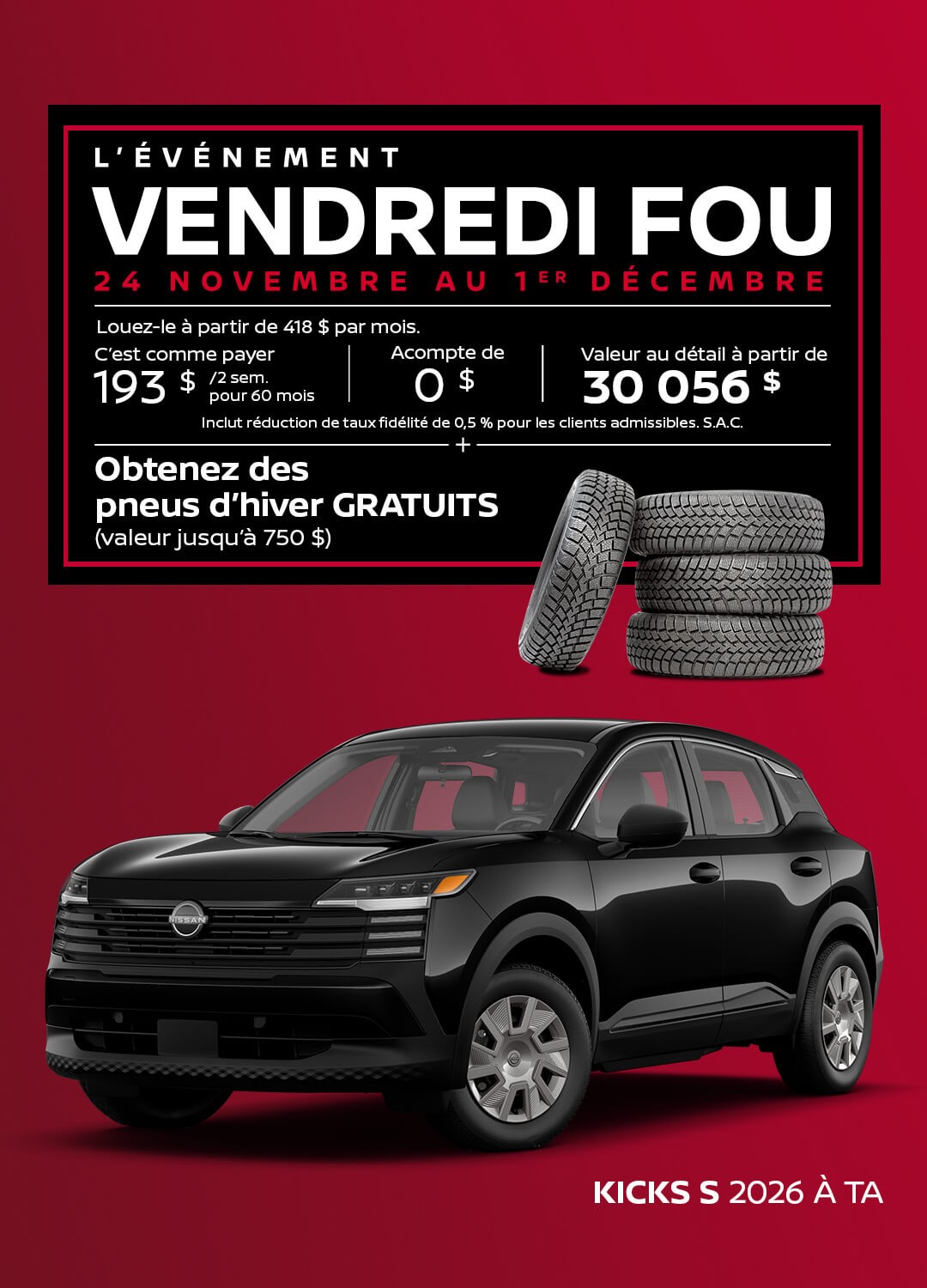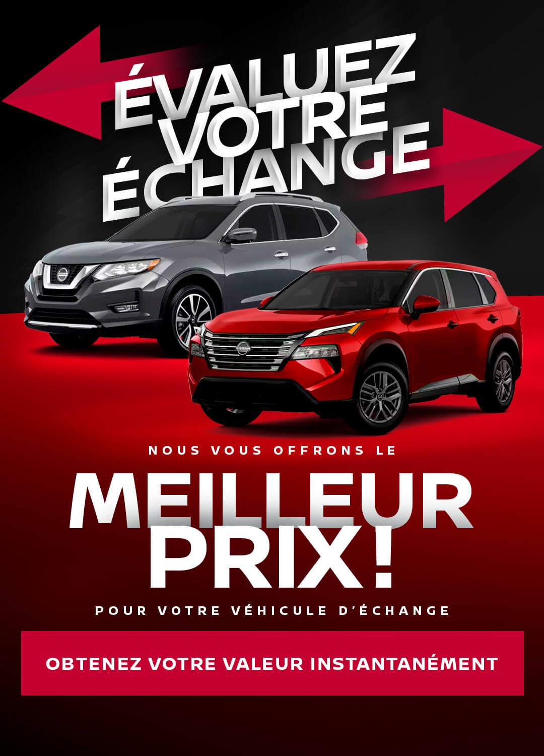 Que ce soit pour l’achat, la location ou l’entretien de votre véhicule, faites de bonnes affaires grâce à des offres spéciales, promotions et offres de financement Nissan flexibles. Notre concessionnaire Nissan s’engage à vous offrir une expérience unique et à vous accompagner à tous les stades. Notre équipe saura vous aider à trouver le véhicule parfait pour vous ou votre famille à Saint-Hyacinthe.